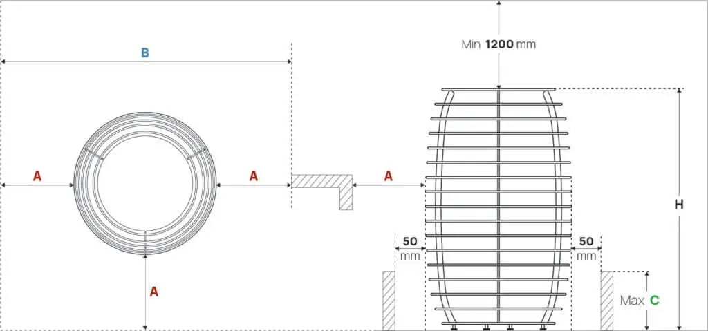 Komplekti kuulub elektrikeris vastavalt valitud võimsusele, reguleeritava kõrgusega (kuni 7cm) jalad ning õhutunnel. Lisaks on vaja kuumakindlat toitekaablit.